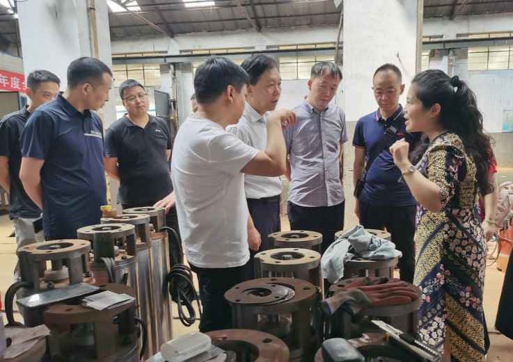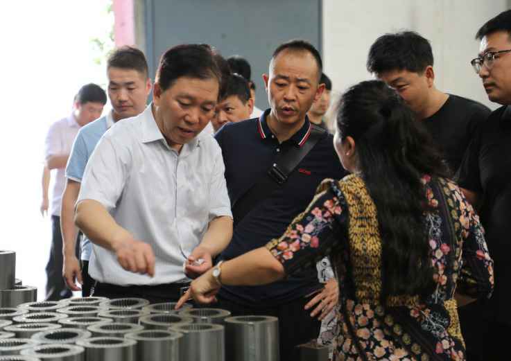 7月25日14:30分河南省商务厅电商处孙琪处长亲临扬州俊琛绿色新能源有限公司工厂,在协会明朝利会长、党支部拓耀书记、扬州俊琛绿色新能源有限公司黄娜总经理和多名慈善企业家的陪同下慰问了一线的生产工人,并参观了扬州俊琛绿色新能源有限公司的生产车间,了解水泵的制造工艺流程、质量标准体系等专业知识。