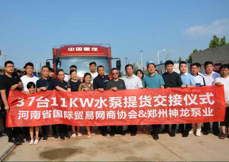 当前最大的难题:排水排涝!7月22日经河南省国际贸易网商协会领导班子决议:捐赠专款,购买水泵;深入一线,自架水泵;企业主动援助人员车辆,全力协助政府排水排涝。然,当前最大的困难:一泵难求!时间就是生命!为快速排水排污,解决水泵紧缺难题,副会长单位扬州俊琛绿色新能源有限公司第一时间为协会协调解决了37台300m³ 11KW大功率水泵。